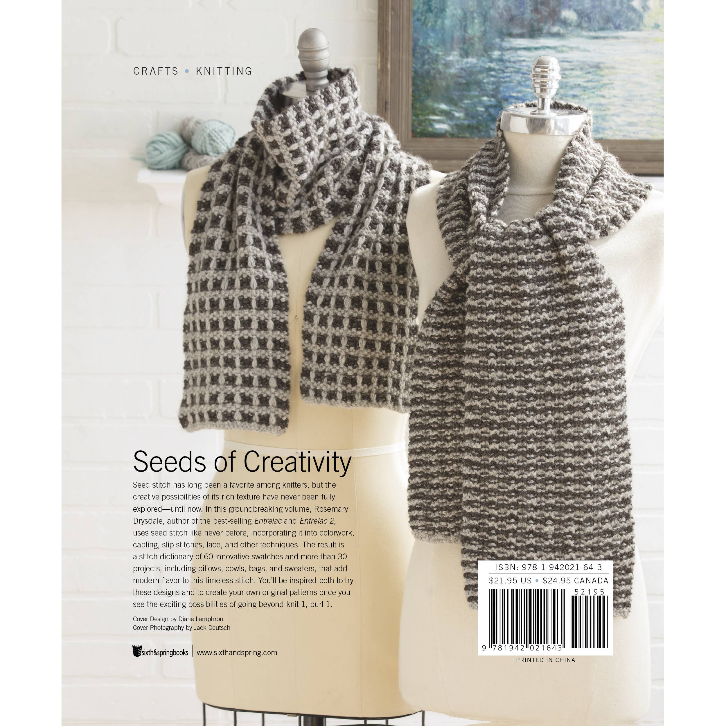 The seed stitch is still one of the most popular among knitters, yet few designers have adapted its rich texture or combined it with other techniques—until now! In her innovative guide, Rosemary Drysdale, the well-known author of Entrelac and Entrelac 2, uses the seed stitch as never before, incorporating it into colorwork, cabling, geometric patterns, and more, and creating 60 innovative swatches. Twenty-five gorgeous projects range from pillows and bags to cowls and sweaters, and give a modern flair to this timeless stitch.