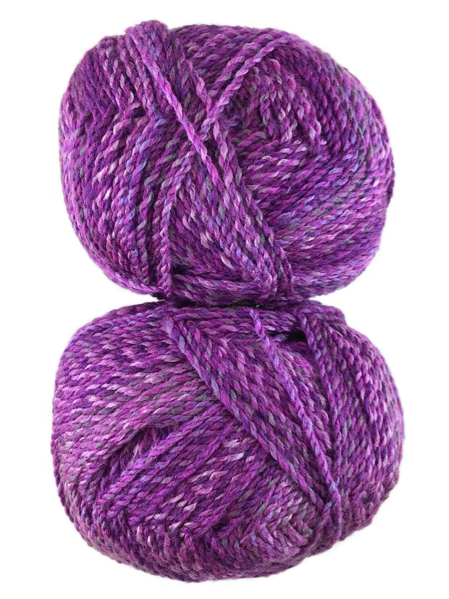 A photo of two pink, blue, yellow colorful balls of Marble Chunky yarn.